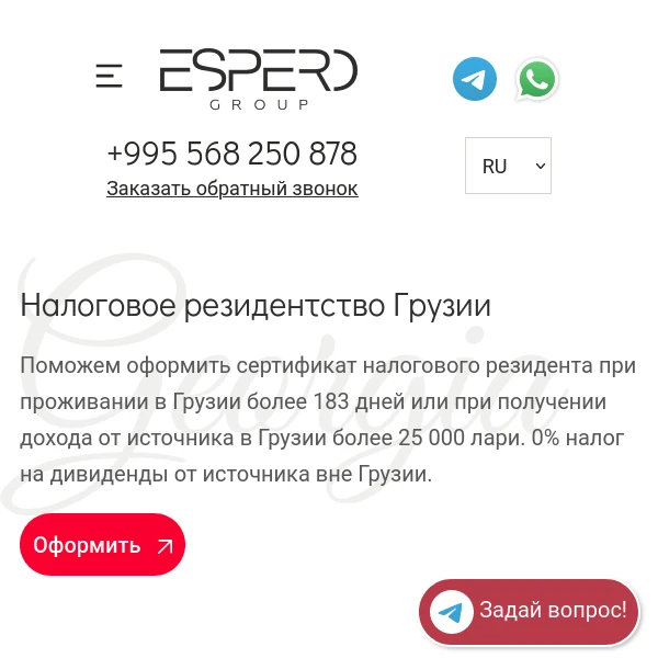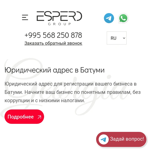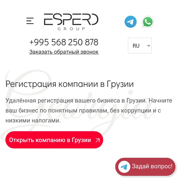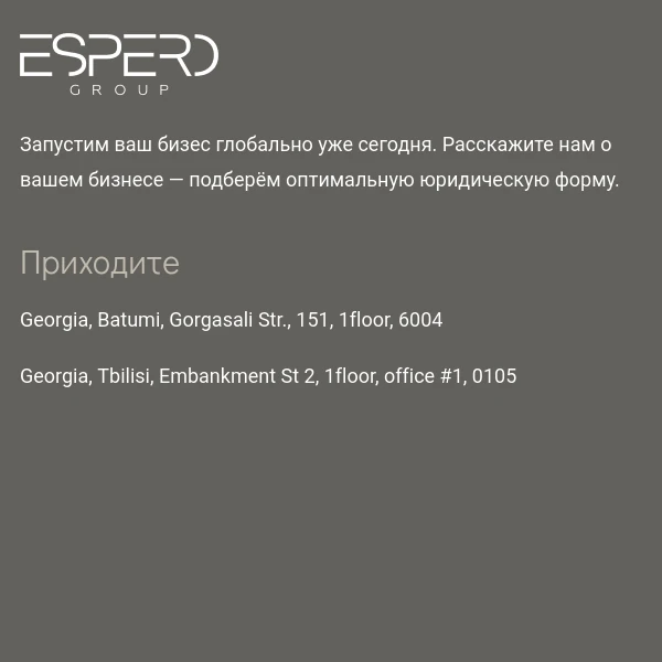 Консультанты компании Эсперо предоставили мне всю необходимую информацию и руководство по процессу регистрации бизнеса в Грузии, помогли мне выбрать оптимальную форму юридического лица для регистрации моего бизнеса и предоставили все необходимые шаблоны и документы для заполнения. Они также оказали мне поддержку во время процесса регистрации, обеспечивая своевременное представление документов и информации в соответствующие органы.